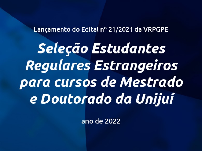 A Unijuí vai selecionar estudantes estrangeiros, por meio de edital, para os cursos de Mestrado e Doutorado. A Universidade tem por objetivo elevar o número de acadêmicos de países com os quais mantêm relações de cooperação, além de seguir ampliando a formação de redes de pesquisa internacionais e apoiar a formação de recursos humanos de alto nível.
