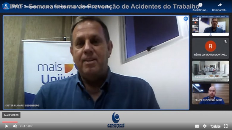 Nesta segunda-feira, 16 de agosto, teve início a Semana Interna de Prevenção de Acidentes de Trabalho (Sipat), promovida pela Comissão Interna de Prevenção de Acidentes (Cipa). O evento tem transmissão pelo canal da Unijuí no Youtube e segue até a próxima sexta-feira, dia 20.