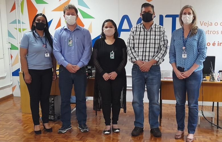 A Agência de Inovação e Tecnologia (Agit) da Unijuí recebeu, na última semana, representantes do Hospital de Caridade de Ijuí (HCI): o diretor-geral, Jeferson Pereira; o coordenador de Relações Institucionais, Allan Fonseca; e a assessora de imprensa Deise Morais. Eles foram recebidos pela chefe do Eixo Pesquisa, Desenvolvimento Tecnológico e Inovação da Agência, Fabiana Simon, e pela analista de Projetos Jr, responsável pelo Escritório de Relações Universidade-Comunidade na Agit, Graciele da Rosa Bertoldo.