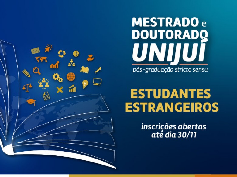 Até a próxima terça-feira, 30 de novembro, permanecem abertas as inscrições para os candidatos estrangeiros que desejam ingressar como estudantes regulares em cursos de Mestrado ou Doutorado na Unijuí. O prazo foi prorrogado, conforme consta no Aditivo ao Edital nº 21/2021, disponível aqui.