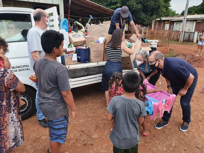 Na tarde de ontem, 22 de dezembro, as entidades parceiras da realização do Projeto Cinema Ijuí - Unijuí, Sesc, Prefeitura de Ijuí e Ceriluz, entregaram os brinquedos arrecadados durante a exibição das sessões de cinema realizadas ao longo dos últimos meses em distritos da cidade e do interior de Ijuí. Foram 500 brinquedos arrecadados em excelentes condições e que fizeram a alegria das crianças moradoras do bairro Getúlio Vargas 2.