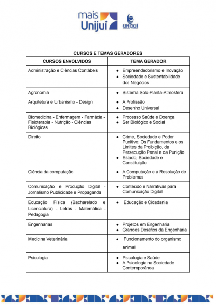 Conheça os cursos e temas geradores disponíveis para o primeiro semestre de 2022.