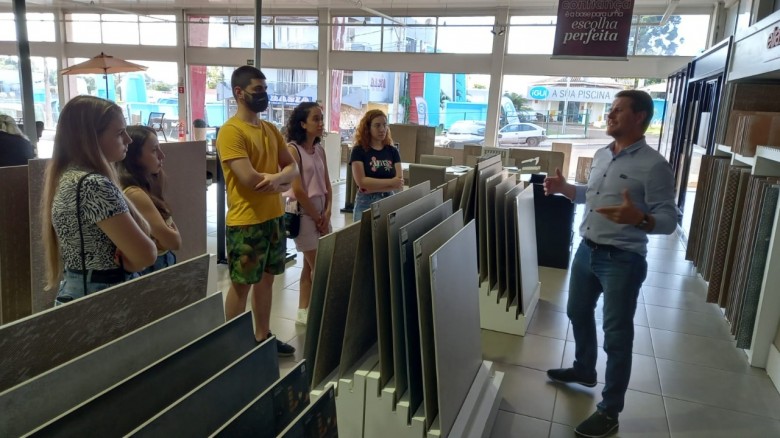 Na Radiolar, uma das empresas visitadas, a turma realizou o acompanhamento de projetos de móveis modulados e a pronta-entrega. Já no Schirmann - Home Center, os estudantes tiveram contato com diferentes tipos de revestimentos e acabamentos para áreas internas e externas, além da parte de metais e materiais sanitários. Na Formatto, conheceram as diferenças entre revestimentos e opções de acabamentos, como pastilhas e pedras naturais, além de fornecedores de metais, cubas e demais acabamentos para ambientes internos e externos.