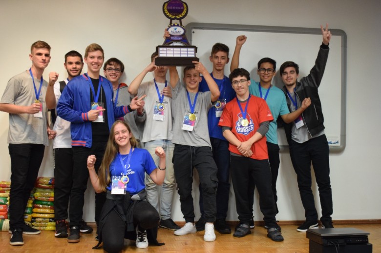 Os estudantes do Colégio Concórdia foram avaliados com a melhor solução e receberam troféu e medalhas. A turma desenvolveu um aplicativo que localiza a pessoa e acompanha seu movimento. O objetivo é ter um sistema de pontuação que pode gerar descontos em lojas conveniadas. O maior número de pontos é destinado aos usuários que optam pela locomoção a pé, seguido da bicicleta, transporte público e carona.