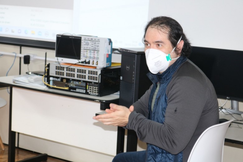 Engenheiro da OPAL no Canadá, Sergio Atayde capacita os professores para uso do equipamento
