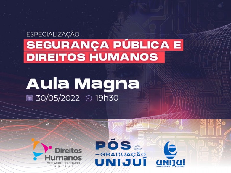 No dia 30 de maio, às 19h30, será realizada a aula magna do curso de Pós-graduação Stricto Sensu em Segurança Pública e Direitos Humanos, no formato híbrido.