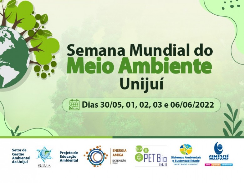 A Unijuí promove entre os dias 30 de maio e 6 de junho, diversas atividades alusivas à Semana Mundial do Meio Ambiente. As ações são pensadas em conjunto com o Setor de Gestão Ambiental, Projeto de Educação Ambiental, Projeto Energia Amiga, Programa de Educação Tutorial (PET) Biologia, Mestrado em Sistemas Ambientais e Sustentabilidade e a Secretaria do Meio Ambiente de Ijuí.