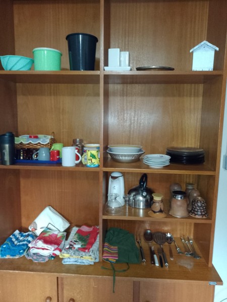 - Utensílios de cozinha (pratos, talheres, panelas, canecas, etc);