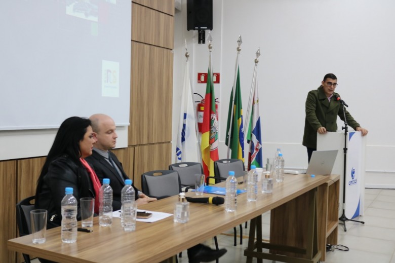 Antes de iniciar a sua palestra, ao lado da ouvidora Tânia Reckziegel, o secretário estadual Mauro Luciano Hauschild falou sobre a importância de estar na Unijuí e de ter a Universidade como uma parceira em diversos projetos que a Secretaria está desenvolvendo. “Desde os programas de estágio, em que os estudantes dos mais diversos cursos podem acessar dentro dos sistemas penal e socioeducativo. O Estado precisa estar cada vez mais próximo do mundo acadêmico, porque é da universidade que sai o conhecimento que vai garantir o desenvolvimento econômico e social do País”, disse.