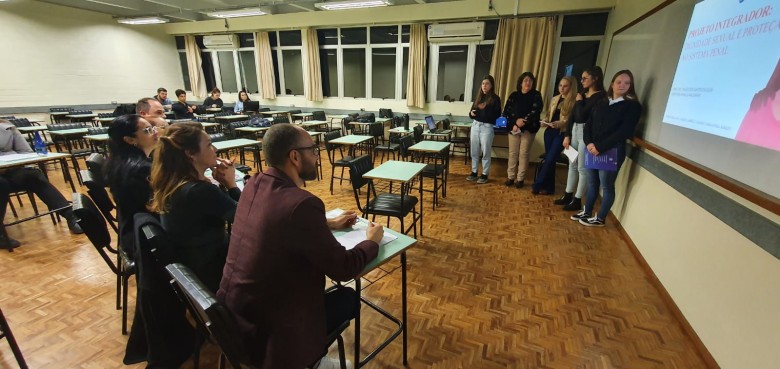 Já na área do Direito, os estudantes se voltaram ao PI Crime, Sociedade e Poder Punitivo: os fundamentos e os limites da proibição, da persecução penal e da punição. Conforme explica o professor Thiago dos Santos da Silva, um dos grupos trabalhou em uma demanda do Projeto de Extensão Diálogos: Tecendo vidas sem violência de gênero. Foram aplicados formulários junto ao campus de Santa Rosa, para se ter um feedback da relação, de homens e mulheres, com temas como cultura do estupro, crimes contra a dignidade sexual e lógica do consentimento. Neste caso, foi proposta a criação de um projeto de extensão, com apoio da Rede de Proteção à Mulher.