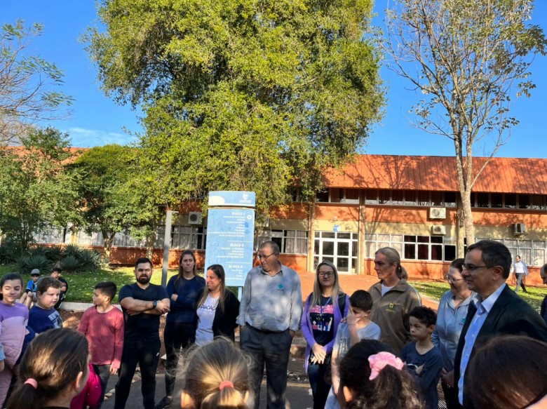 Estiveram presentes na visita o prefeito de Santa Rosa, Anderson Mantei; o presidente da Fumssar, Délcio Stefan; a secretária de Educação e Cultura, Lires Zimmermann; a diretora de Atenção Primária da Fumssar, Fabiana Breitenbach; a coordenadora do PSE, Andréa Bauken; a coordenadora do Lafps, Moane Krug; além de profissionais que trabalham no projeto, representantes das escolas participantes e alunos.