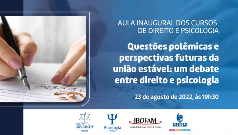 Na próxima terça-feira, 23 de agosto, será realizada a aula inaugural dos cursos de Direito e Psicologia da Unijuí. O evento será online, com transmissão pelo canal da Unijuí no Youtube, a partir das 19h30.