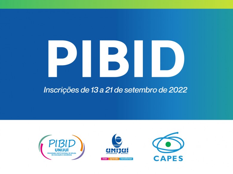 Nesta terça-feira, dia 13 de setembro, foram abertas as inscrições para a seleção de bolsistas para o Programa Institucional de Bolsas de Iniciação à Docência - Pibid/Capes/Unijuí 2022. As vagas são destinadas a acadêmicos dos cursos de Licenciatura em Educação Física, Pedagogia e Letras - Português e Inglês. Interessados devem encaminhar a ficha de inscrição e os documentos solicitados (disponíveis no site da Unijuí, em Edital VRG nº 6/2022) para o e-mail pibid@unijui.edu.br, até o dia 21 de setembro.