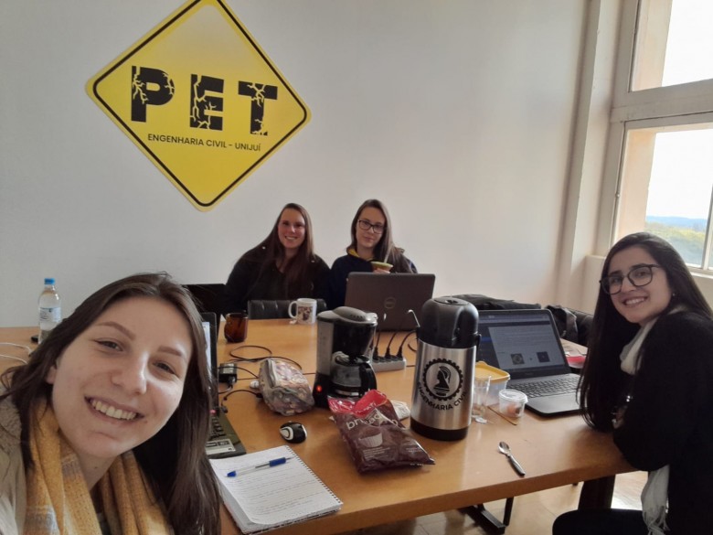 Integrantes da equipe PET-EGC se reúnem para trabalhar no desafio do Rally de Innovación.