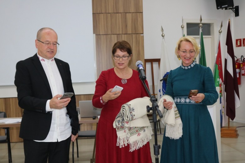 Dace falou das experiências que teve na cidade, no Madp e no Espaço + Inovação da Unijuí. Resgatou a história da Letônia e falou da alegria em ver o país estabelecendo relações diplomáticas com o Brasil. A deputada falou com preocupação da guerra entre Rússia e Ucrânia, que afeta diretamente a Letônia e diversos países do mundo, e destacou que se trata de uma luta entre a autocracia e a democracia. “É muito importante termos uma relação pacífica entre as nações. Uma relação que se inicia com o respeito. É a diversidade que nos traz riquezas”, afirmou, destacando que a cultura de Ijuí tem grande valor e que é um campo fértil para outras partes do mundo.