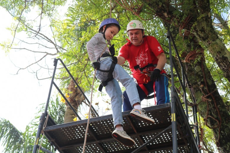 O Dia das Crianças, celebrado neste 12 de outubro, foi marcado por muitas atividades recreativas na Casa da Unijuí na Expofest. O público infantil pôde participar de brincadeiras, apresentações de mágicas e contação de histórias, promovidas pelo curso de Pedagogia. A Cia Cadagy - Corpo em Movimento, também esteve presente alegrando os visitantes. Para os que adoram uma aventura, em frente à Casa, o curso de Educação Física da Universidade promoveu o rapel, ação orientada pelos professores e estudantes.