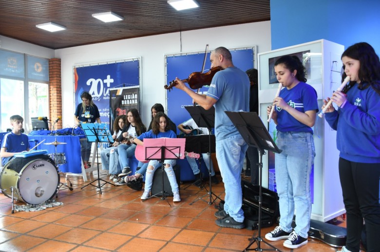Além da homenagem recebida, a Universidade esteve presente em mais um dia de Expofest com diversas atividades na Casa. Dando início às ações, a partir das 14h, os visitantes da Casa da Unijuí tiveram a oportunidade de realizar uma imersão tecnológica promovida pelo Espaço + Inovação, que levou para a Feira os óculos de realidade virtual, patinetes elétricos e o Robô NAO. Também durante a tarde, o público pôde prestigiar uma apresentação da Orquestra do Centro de Educação Básica Francisco de Assis (EFA), que conta com estudantes desde o 6º ano do Ensino Fundamental até o 3º ano do Ensino Médio.