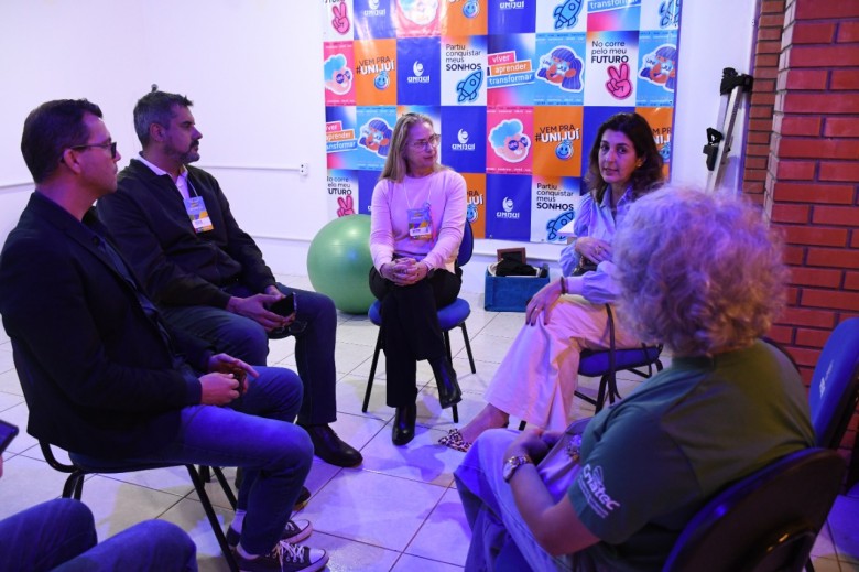 A Casa da Unijuí recebeu ainda a visita da secretária adjunta de Inovação, Ciência e Tecnologia do Rio Grande do Sul, Simone Stülp, que, na sequência, participou de uma palestra no Auditório do Centro Administrativo, com o tema “Oportunidades e Desafios da Inovação Aberta”. O evento também contou com falas do diretor de Inovação e Negócios da Pense Inovação, Nelinho Davi Graef, e do gestor de Inovação e Tecnologia da Startup Lab, Germano da Rosa. A palestra foi promovida pela Unijuí, por meio da Criatec, Pense Inovação, Município de Ijuí, Startup Lab, Inova RS, Fapergs e Governo do RS.