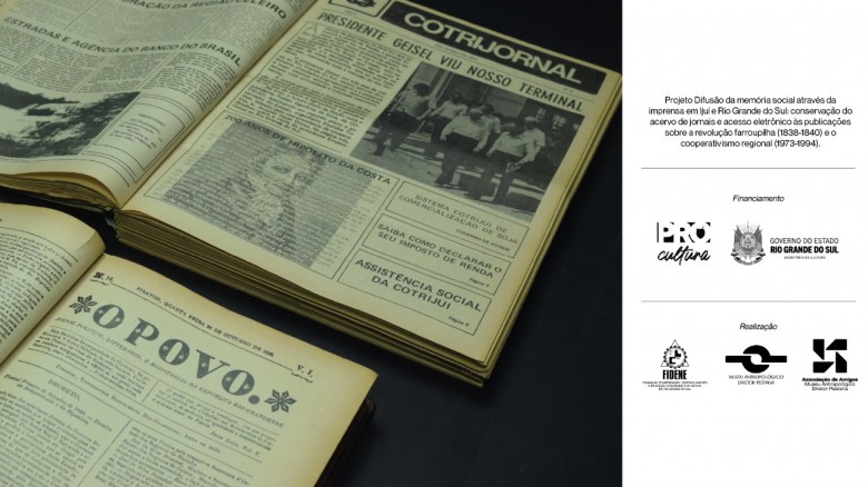 A Associação de Amigos do Museu Antropológico Diretor Pestana e o MADP estão executando o projeto “Difusão da memória social através da imprensa em ljuí e Rio Grande do Sul: conservação do acervo de jornais e acesso eletrônico às publicações sobre a Revolução Farroupilha (1838-1840) e o cooperativismo regional (1973-1994)”, por meio de financiamento do Pró-Cultura RS - Governo do Estado do Rio Grande do Sul - Edital SEDAC nº 07/2021 do Concurso FAC Patrimônio.