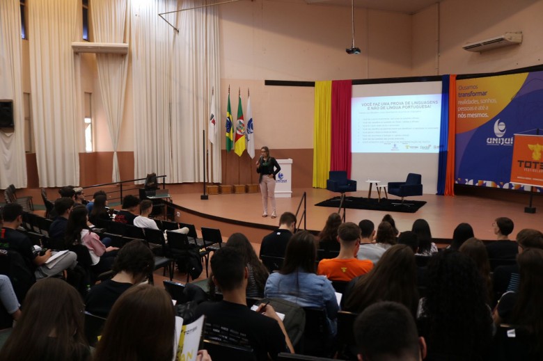 No último sábado, dia 29 de outubro, ocorreu a primeira edição do Com o Pé no Futuro, um aulão preparatório para o Enem promovido pela Unijuí, em parceria com os cursinhos pré-vestibulares Totem, Doctor e Átomo. A atividade, que ocorreu no campus Santa Rosa, reuniu cerca de 110 estudantes de Ensino Médio do município e região, contando também com mostra dos cursos de Graduação da Universidade. Neste sábado, 5 de novembro, será a vez do campus Ijuí sediar o evento.