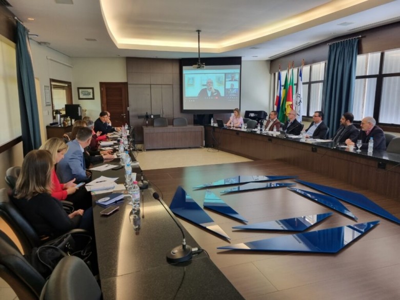 Desafios do Comung para o próximo ciclo. Este foi o tema da Assembleia Geral Extraordinária do Consórcio das Universidades Comunitárias Gaúchas, presidido pela reitora da Urcamp, professora Lia Maria Herzer Quintana, que aconteceu na tarde de ontem, 3 de novembro, na Universidade do Vale do Taquari, em Lajeado. Na Univates, os reitores das Instituições estiveram reunidos de forma híbrida e contaram com a participação da reitora da Universidade do Extremo Sul de Santa Catarina – Unesc e vice-presidente do Sistema Acafe, Luciane Ceretta. A reitora da Unijuí, professora Cátia Maria Nehring, esteve presente.