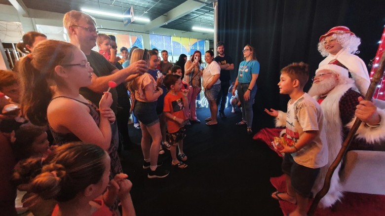 As comunidades interna e externa participaram na noite desta quarta-feira, 7 de dezembro, da abertura oficial da 2ª edição do Natal na Unijuí. As atividades tiveram início no Salão de Atos da Universidade, com show do Grupo de Arte e Cultura Nativa Amigos do Rio Ijuí - Pesqueiro da Canção, e seguiram com o acendimento das luzes no campus, chegada do Papai Noel, mateada com a Especiarias do Mate e venda de cachorro-quente com o Lions Clube.