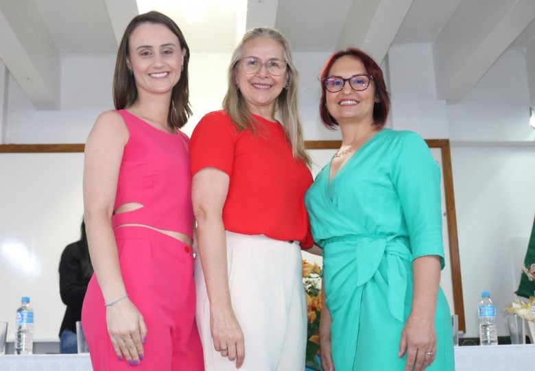 Vice-diretora Eduarda Burckardt Lorenzoni; presidente da Fidene, professora Cátia Maria Nehring; e diretora Maristela Heck