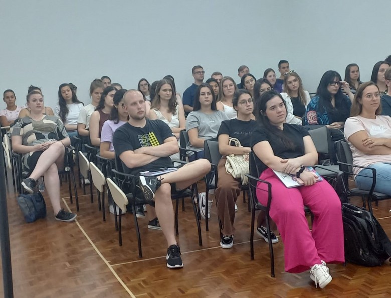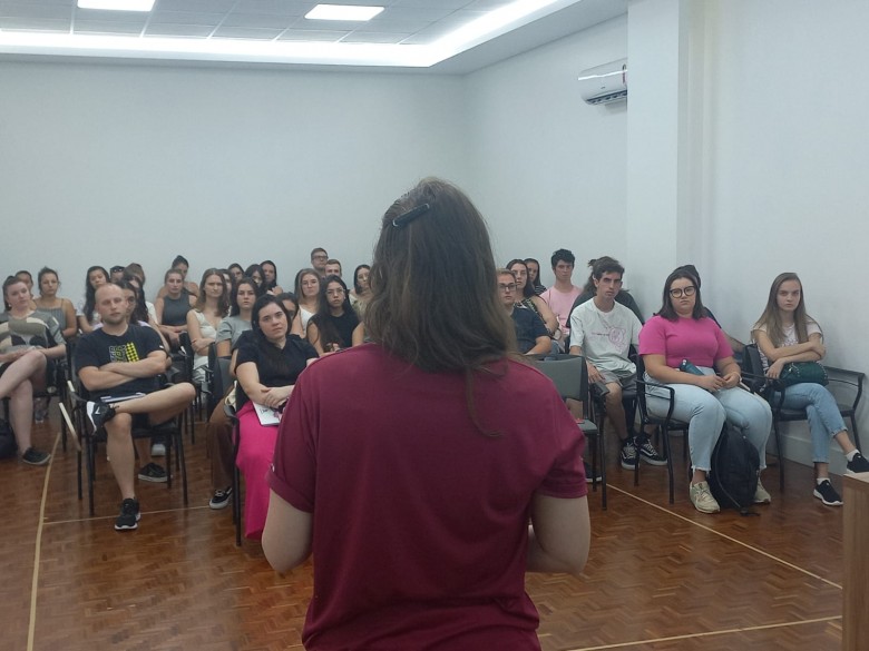 Além do relato pessoal, a painelista falou sobre a importância da submissão de trabalhos no Salão do Conhecimento - evento promovido pela Unijuí, de aprender um novo idioma e destacou as possibilidades que os acadêmicos podem ter na Universidade para além da graduação, o que contribui para uma formação completa.