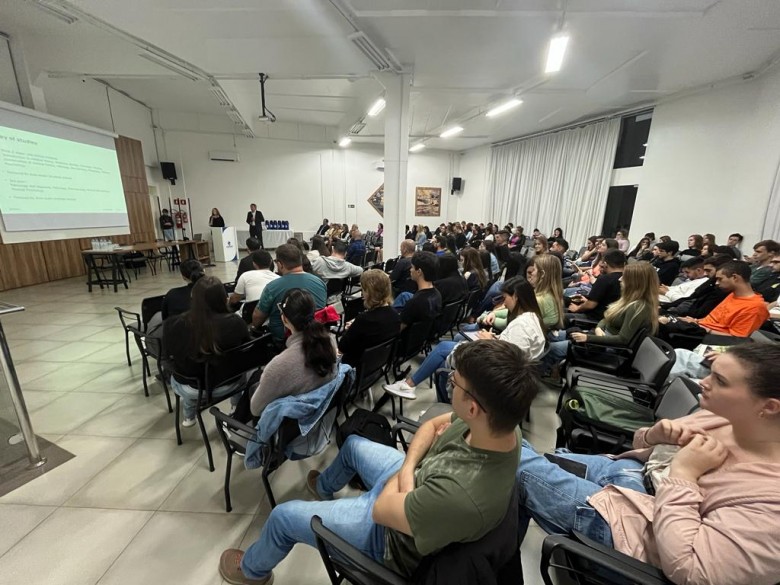 Junto ao Centro de Eventos da Unijuí, aconteceu na noite desta terça-feira, 25 de abril, o Seminário Temático promovido pelo Escritório de Relações Internacionais (ERI), Programa de Pós-Graduação Stricto Sensu em Atenção Integral à Saúde (PPGAIS), curso de Medicina e Programa de Pós-Graduação Stricto Sensu em Educação nas Ciências (PPGEC).