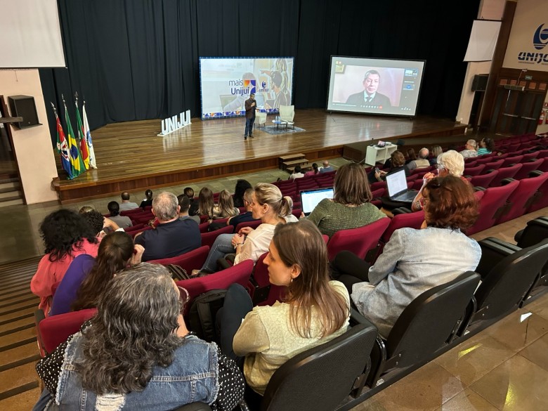 Na tarde desta quarta-feira, 26 de abril, foi realizado o primeiro encontro do Programa de Formação Docente, promovido pela Vice-reitoria de Pós-Graduação, Pesquisa e Extensão (VRPGPE), Núcleo de Inovação Pedagógica (NIP) e Vice-reitoria de Graduação (VRG). O evento foi realizado no Salão de Atos do campus Ijuí, contando com transmissão para os demais campi da Universidade.