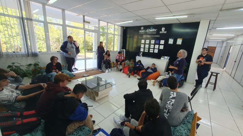 Estudantes da turma de Ijuí do Projeto de Extensão Programe seu Futuro, participaram, no dia 9 de maio, de diversas atividades interativas na Incubadora de Empresas de Inovação Tecnológica da Unijuí (Criatec). Iniciando a programação, os alunos puderam conhecer a estrutura da Incubadora, incluindo os laboratórios de soluções criativas e prototipagem, e aprender sobre o funcionamento da Criatec.
