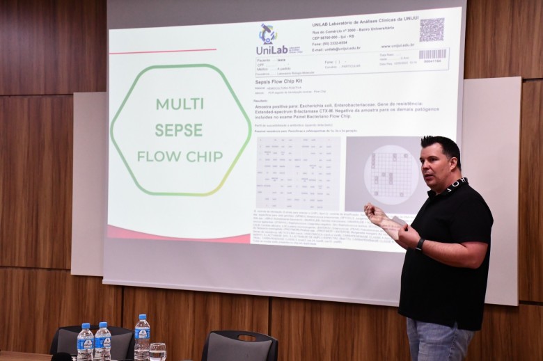 O coordenador técnico do Unilab, professor doutor Matias Nunes Frizzo e a consultora comercial da Mobius Life Science, Carla Karusky, explicaram aos presentes como funciona a Metodologia Flow Chip. Esses exames envolvem um método de amplificação simultânea que permite que em uma única análise sejam identificados inúmeros patógenos, organismos capazes de causar doenças.