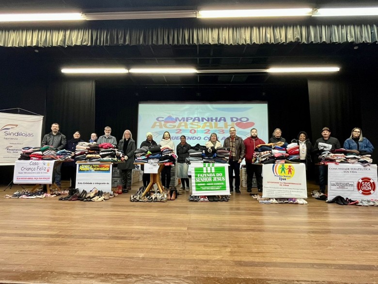 Ocorreu na manhã desta quarta-feira, 14 de junho, a entrega dos donativos arrecadados durante a Campanha do Agasalho 2023 - “Aquecendo com amor”, para entidades assistenciais. A campanha foi promovida pelo Sistema Fecomércio/RS, Sindilojas Noroeste, Sesc e Senac de Ijuí em parceria com a Unijuí e empresas locais.