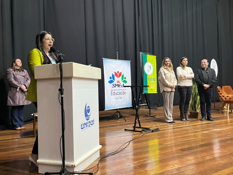 Antes da palestra da noite, foi realizada a solenidade de abertura, que contou com a presença da coordenadora do Programa Municipal de Justiça Restaurativa, Josiane Fagundes; da juíza de Direito, Maria Luiza Pollo Gaspary; da vice-reitora de Graduação da Unijuí, professora Fabiana Fachinetto; e do secretário municipal de Educação, Cláudio de Souza, que no evento esteve representando o prefeito, Andrei Cossetin.