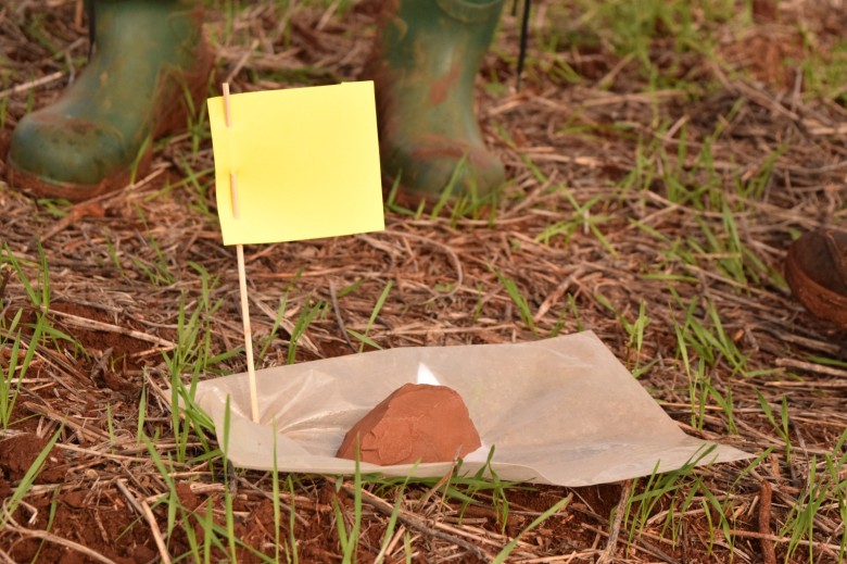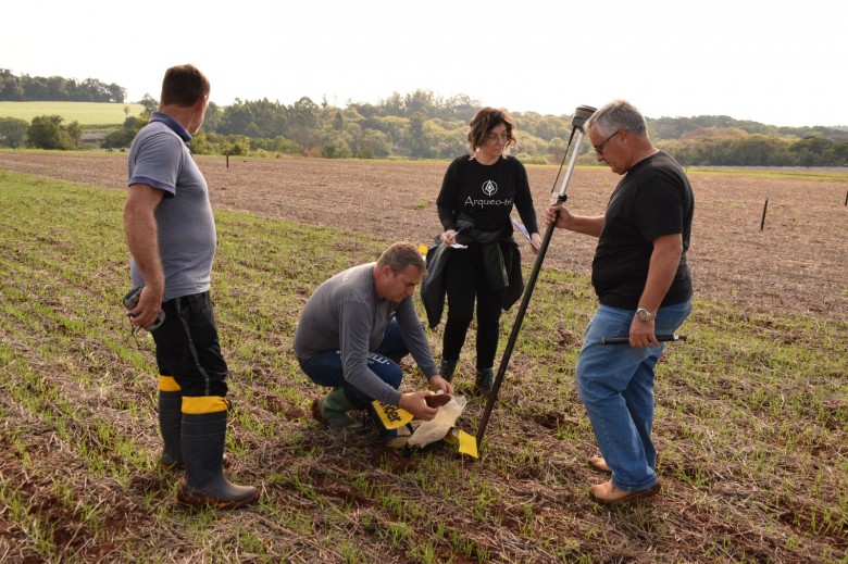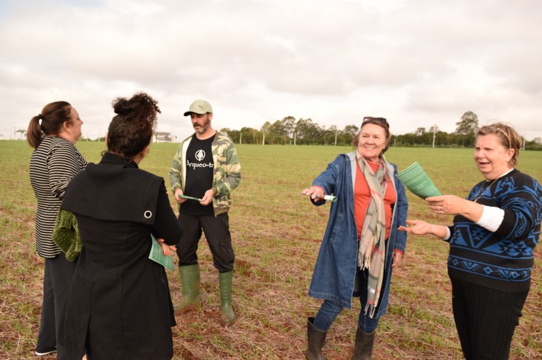A equipe do Museu Antropológico Diretor Pestana (Madp) foi até o Sítio para entender o processo de identificação e mapeamento desenvolvido pela Arqueo-Tri, empresa que oferece consultoria em Arqueologia no âmbito do Licenciamento Ambiental. Clóvis Schmitz, o arqueólogo responsável pela pesquisa, ressalta que a partir da marcação de cada fragmento, o espaço é sinalizando com as bandeirinhas amarelas, facilitando o visual, para que a equipe de topografia possa ir marcando os pontos e sabendo de onde os artefatos saíram. A coleta do material acontece somente após o ponto estar devidamente registrado.