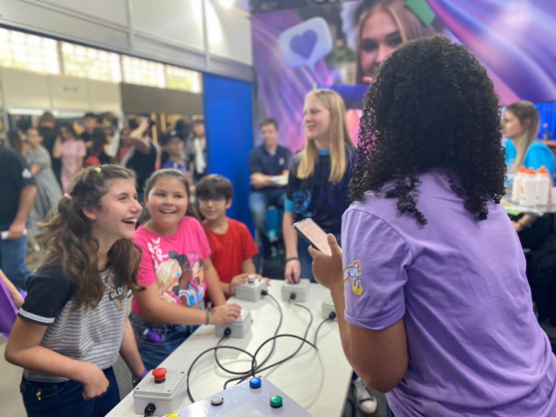 À tarde, os visitantes da Feira participaram do quiz do Projeto de Extensão Energia Amiga. Ao decorrer da atividade, que contemplava a entrega de brindes especiais, crianças, adolescentes e adultos responderam questões sobre sustentabilidade, meio ambiente e geração de energia limpa.