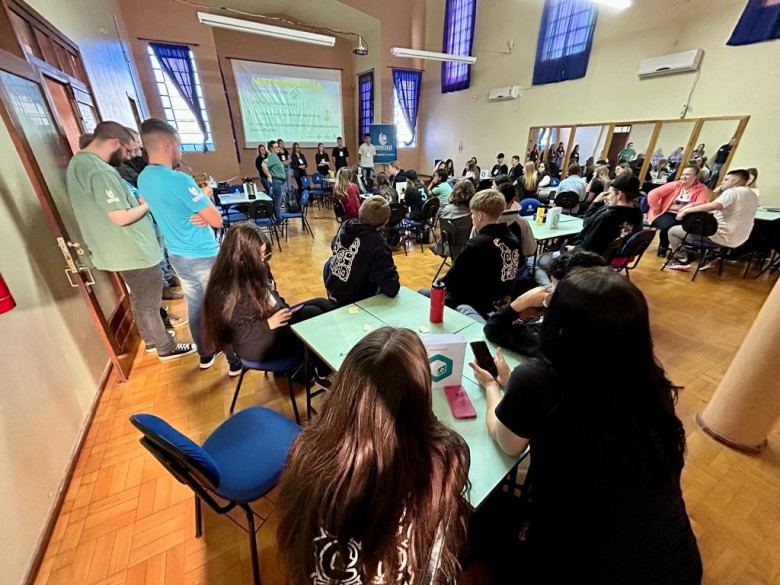 Inicialmente, as escolas participaram de uma dinâmica, onde tiveram que elaborar uma ideia de produto ou serviço em 3 minutos, a partir de três palavras que foram citadas pelos estudantes e anotadas em post-its pelos professores. Depois, foi a vez de formar equipes com integrantes de diferentes escolas.