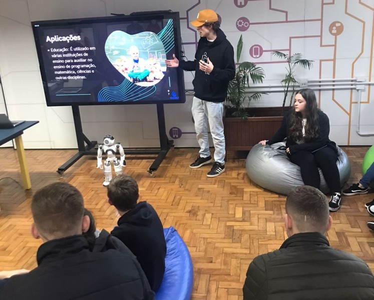 O projeto contemplou a realização de um treinamento de 4h no dia 3 de julho sobre o Robô NAO e a Inteligência Artificial, direcionado aos estudantes do 2º Ano do Ensino Médio da Escola Técnica Estadual 25 de Julho de Ijuí. O evento reuniu a expertise tecnológica do projeto com o entusiasmo e a curiosidade da próxima geração de mentes inovadoras.