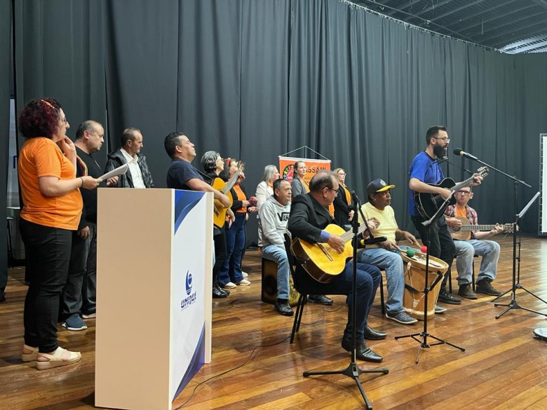 Na noite desta quinta-feira, 5 de outubro, aconteceu no Salão de Atos da Unijuí o evento Arte e Saúde Mental Assami/Casa Ama, organizado pelos estudantes do Projeto Integrador IV: Gestão em Saúde do Núcleo da Saúde, juntamente com professores da disciplina e com integrantes da Associação de Saúde Mental e da Casa de Auto-Mútuo-Ajuda de Ijuí.