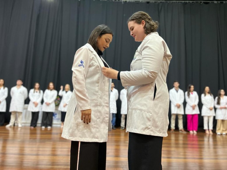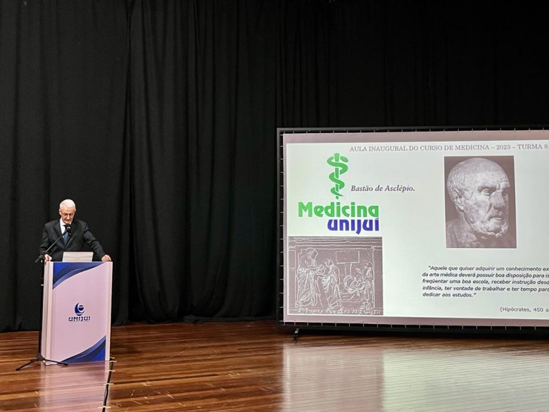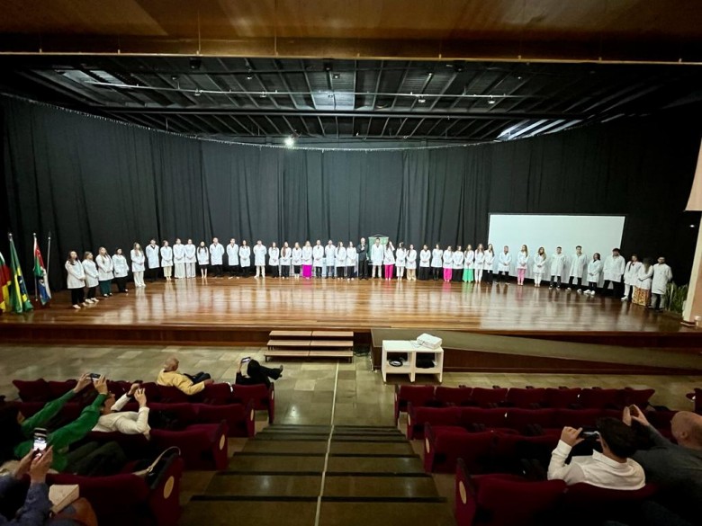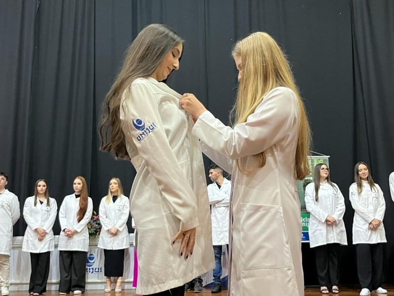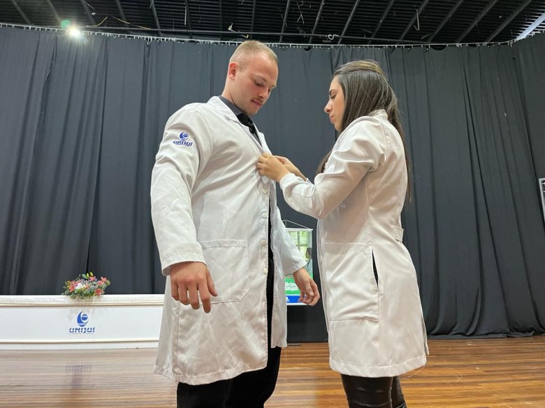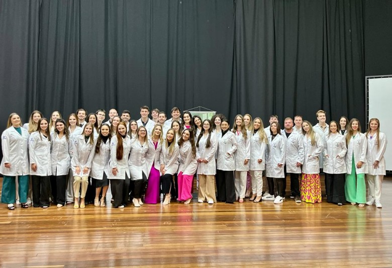 O curso de Medicina da Unijuí promoveu na noite da última sexta-feira, 6 de outubro, sua aula inaugural, que contou com a cerimônia de entrega dos jalecos aos calouros da oitava turma. O evento foi realizado no Salão de Atos da Universidade e contou com a presença de pais, professores e estudantes, tanto ingressantes quanto veteranos.