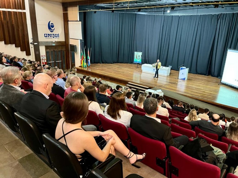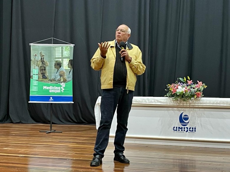 A saudação inicial ficou a cargo do vice-reitor de Administração, professor Dieter Siedenberg, que destacou que o curso está em seu quinto ano de implementação e já conta com mais de 300 estudantes. “A Universidade está realizando o processo de implementação com muita responsabilidade, a partir de uma proposta pedagógica diferenciada, que vem dando resultados. Hoje, mesmo, um grupo de profissionais do Grupo Helios, maior rede de hospitais e clínicas da Europa, esteve na Unijuí conferindo as estruturas do curso de Medicina. E eles, que possuem 111 hospitais na Alemanha, 90 centros médicos e 21 centros de reabilitação, disseram que têm muito a aprender conosco, tanto em qualificação quanto no uso de tecnologias”, comentou o vice-reitor.