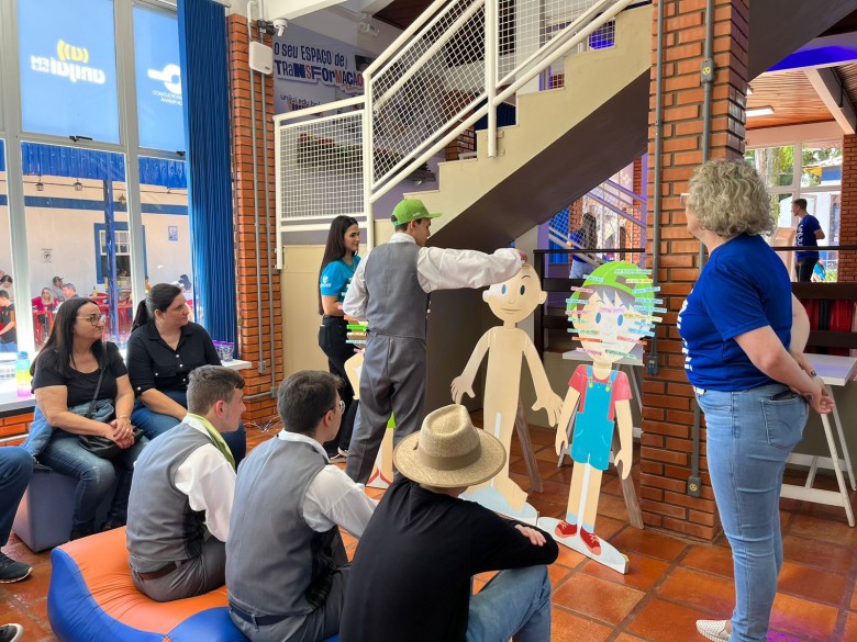 Durante todo o dia, o curso de Medicina Veterinária esteve no Pavilhão da Produção Rural, com a exposição de animais de produção e roleta do conhecimento, em que os visitantes que respondem as perguntas corretamente ganham brindes.