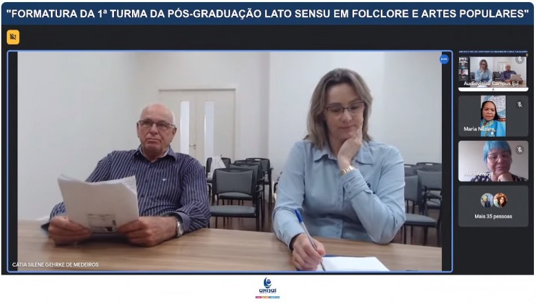 Na manhã do último sábado, 11 de novembro, a Unijuí, em parceria com a Organização Internacional de Folclore e Artes Populares do Brasil (IOV Brasil), realizou a formatura online da primeira turma de Pós-Graduação Lato Sensu em Folclore e Artes Populares: Cultura, Desenvolvimento e Gestão. Ofertada na modalidade Educação a Distância (EaD), a especialização contou com estudantes de 16 Estados, que iniciaram suas aulas em junho de 2020.