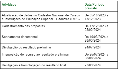 FONTE: EDITAL Nº 01, DE 4 DE OUTUBRO DE 2023