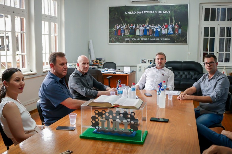 Com objetivo de estreitar a parceria e alinhar projetos com o Executivo de Ijuí, a reitoria da Unijuí, empossada na tarde de ontem, esteve nesta sexta-feira, na prefeitura municipal em encontro com o prefeito Andrei Cossetin e secretários das pastas do governo. A proposta foi de ampliar a relação entre a Universidade e o município, além de apresentar os novos membros do grupo ao gestor municipal para debater novos projetos e ideias que a gestão 2023-2027 quer implementar.