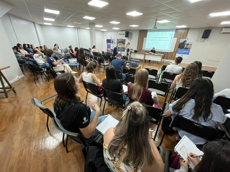 A palestra “A formação de professores e o futuro da educação na era digital” foi conduzida pela professora do Instituto Federal Farroupilha - campus Panambi e doutora em Educação nas Ciências, Sirlei Rigodanzo.