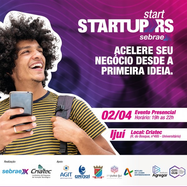 A Incubadora de Empresas de Inovação Tecnológica - Criatec da Unijuí e o SebraeX acabam de lançar o Programa Startup RS Start Ijuí, destinado às startups, empresas tecnológicas em estágio inicial e potenciais empreendedores que buscam a estruturação e validação do seu modelo de negócios.