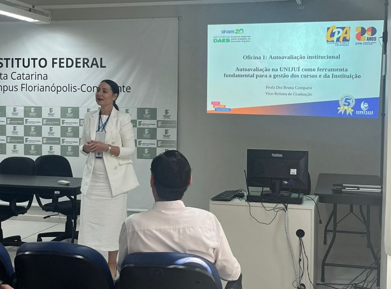 Nesta semana, nos dias 25 e 26 de março, a Unijuí esteve representada pela professora doutora Bruna Comparsi, vice-reitora de Graduação, no Seminário DAES - Encontro Regional sobre Avaliação da Educação Superior, realizado no Instituto Federal de Santa Catarina, na cidade de Florianópolis. O evento é uma promoção do Instituto Nacional de Estudos e Pesquisas Educacionais Anísio Teixeira (Inep).