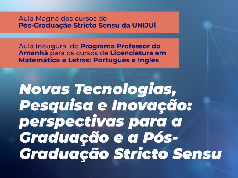 Na próxima terça-feira, 2 de abril, será realizada a aula magna dos cursos de Pós-Graduação Stricto Sensu da Unijuí, juntamente com a aula inaugural do Programa Professor do Amanhã para os cursos de licenciatura em Matemática e Letras: Português e Inglês. O evento acontecerá no Centro de Eventos, às 19h.