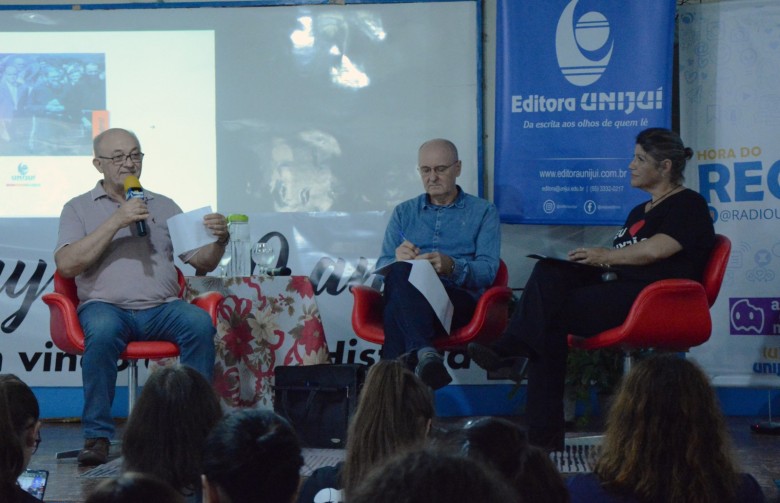 O momento foi proporcionado para 11 turmas, entre elas estudantes do 1º, 2º e 3º anos, com a presença do mestre e doutor em Educação e professor da Unijuí, José Pedro Boufleuer, e do doutor em Ciências Educativas, Sociologia, Pedagogia e Ciências Políticas e professor da Unijuí, Walter Frantz.